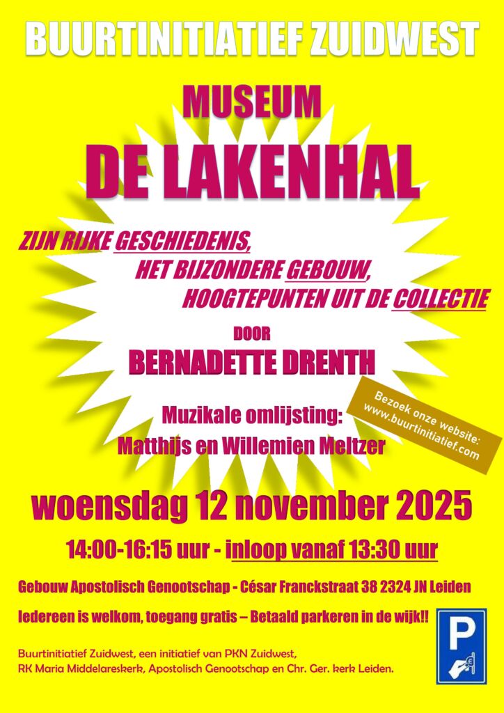 Op deze woensdagmiddag is er weer een boeiende bijeenkomst in Leiden Zuidwest, ditmaal in het gebouw van het Apostolisch Genootschap, Cesar Franckstraat 38.
